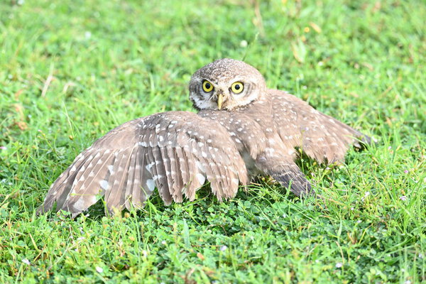 709102002 Spotted owlet athene brama staring , Keola Deo Ghana national park , Bharatpur , Rajasthan , India