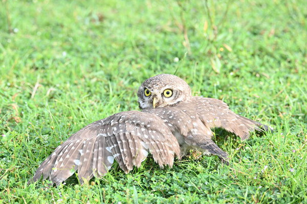 847937152 Spotted owlet or Athene brama owlet. It is a small owl which breeds in tropical Asia from Southeast Asia. This is a roost in small groups in the hollows of trees or in cavities in rocks and buildings.
