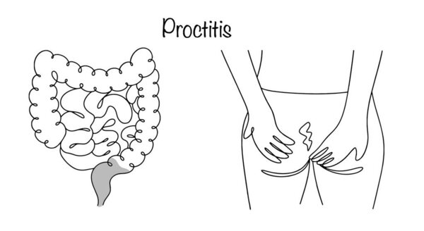 747657728 Proctitis. Inflammation of the rectal mucosa. The disease is manifested by a feeling of discomfort in the rectum and stool disturbances. Vector illustration.