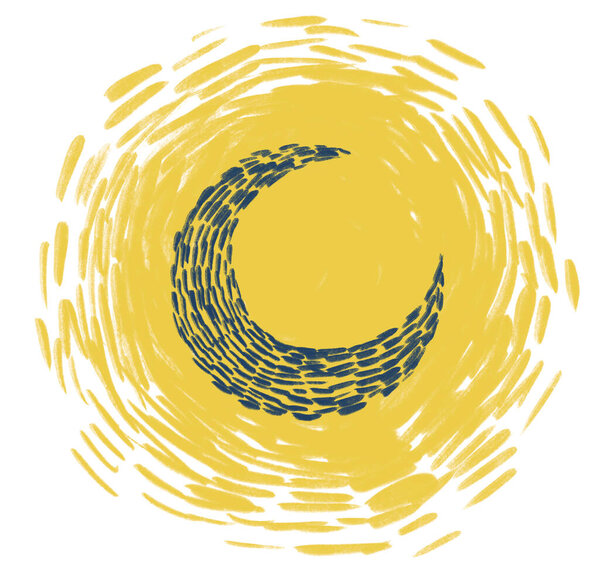 746412434 Starry night moon illustration hand painting modern style vincent van gogh inspire stars and crescent moon art