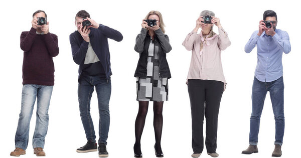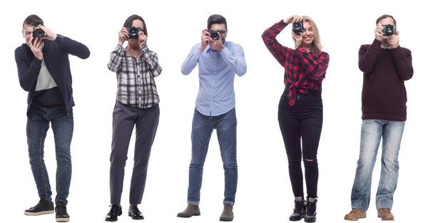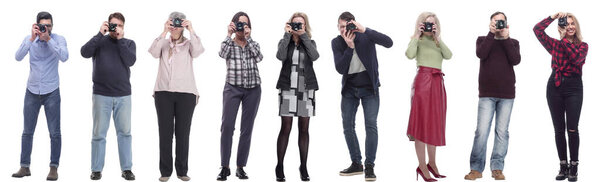 609383862 Many Double Twelve Group paparazzi photographers with cameras isolated on white collage