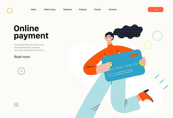 628855810 Online payment - Online shopping and electronic commerce series - modern flat vector concept illustration of a young woman holding the credit card. Promotion, discounts, sale and online orders concept