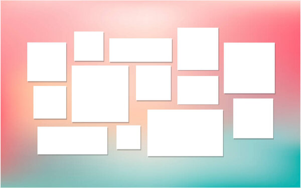 852885518 Wide, horizontal photo collage. Geometric grid for arranging numerous images in a mood board, photo gallery. Decorative vector template frame.