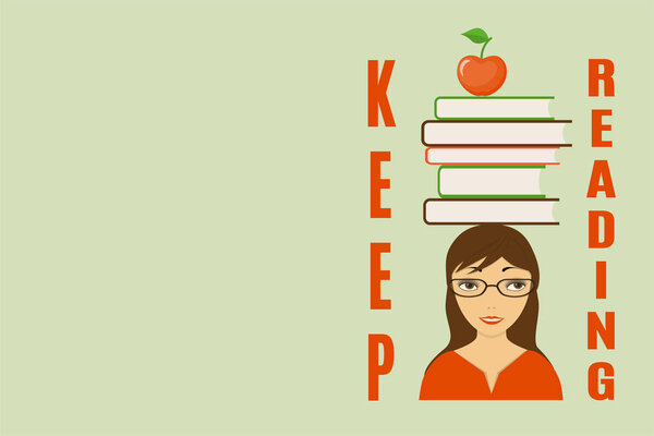 158828322 Cover design with text Keep reading, girl and books on her head for cover of tutorial, book, notebook, copybook. Cover A5 template with back. EPS 10.