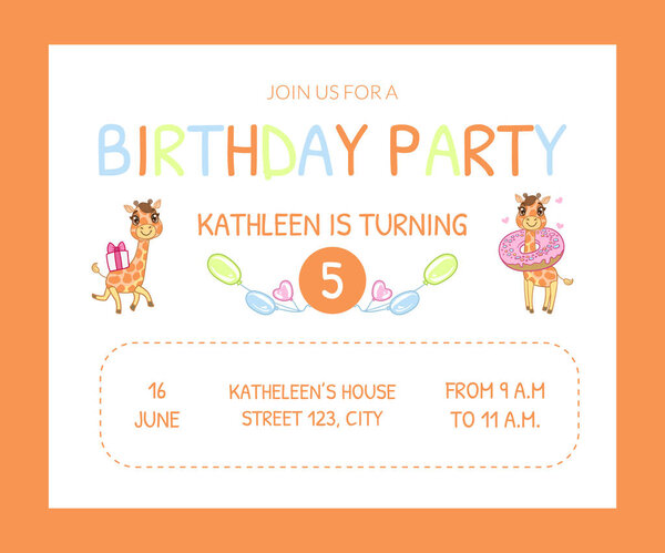 276587246 Happy Birthday Invitation Card Template with Cute Animals, Number of Years and Date Vector Illustration, Web Design.