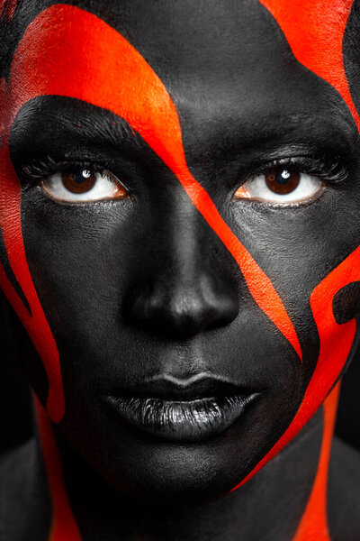 701013620 Art fashion makeup. An amazing woman with black makeup and leaking gold paint