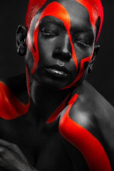709933742 The Art Face. How To Make A Mixtape Cover Design - Download High Resolution Picture with Black and yellow body paint on african woman for your Music Song. Create Album Template with Creative Image