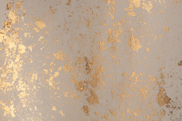 696610292 Crumble Paper texture painting glow glitter blot wall. Abstract gold, nacre and beige stain copy space background.