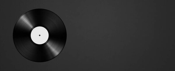 625740292 Vinyl record isolated on black background. Horizontal banner. 3D illustration