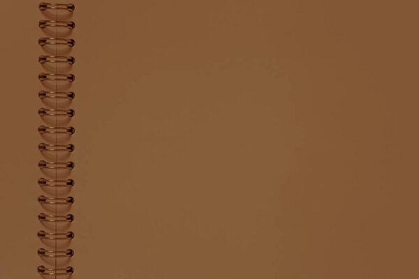 820281100 Abstract coffee color backdrop: close up of blank page of sketchbook with metal binder