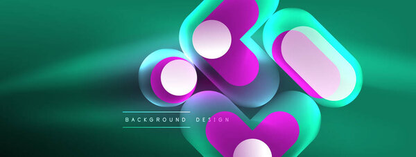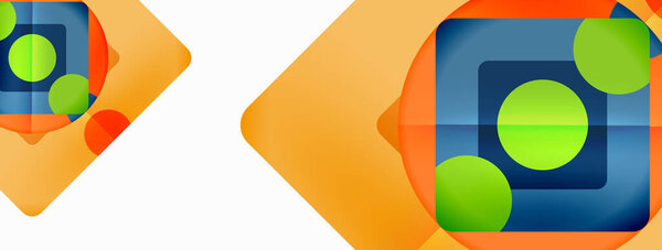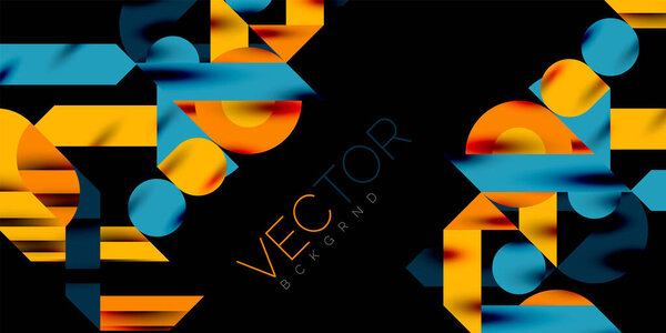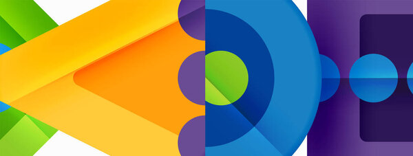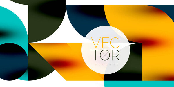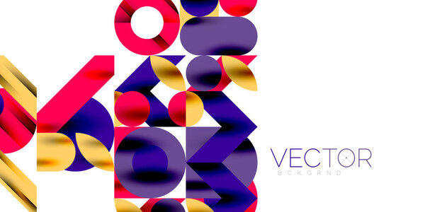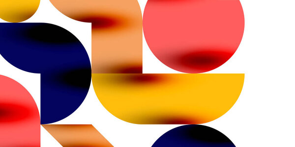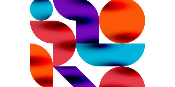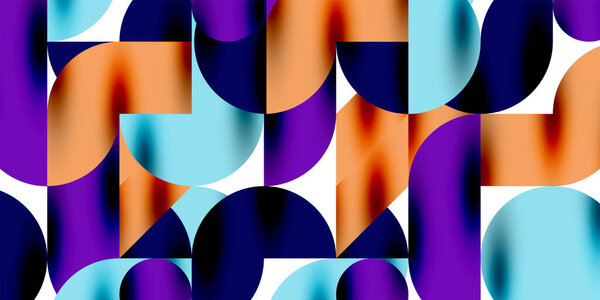 732341554 Colorful simple dynamic geometric forms circles lines and round shapes. Mosaic techno art concept. Vector Illustration For Wallpaper, Banner, Background, Card, Book Illustration, landing page