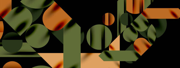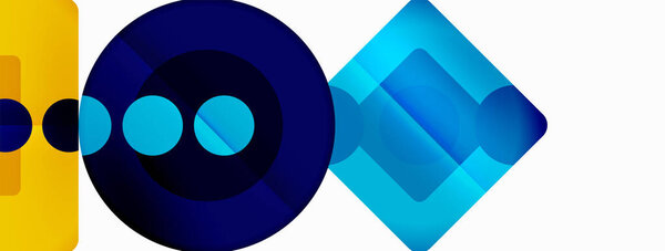 734045976 Colorful simple dynamic geometric forms circles lines and round shapes. Mosaic techno art concept. Vector Illustration For Wallpaper, Banner, Background, Card, Book Illustration, landing page