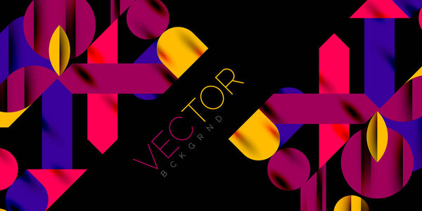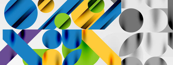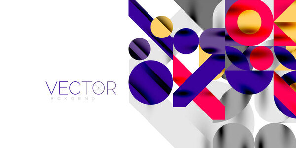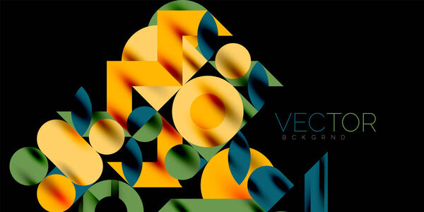 732920856 Colorful simple dynamic geometric forms circles lines and round shapes. Mosaic techno art concept. Vector Illustration For Wallpaper, Banner, Background, Card, Book Illustration, landing page