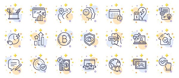 691462680 Outline set of Eye detect, Parking payment and Time management line icons for web app. Include Cogwheel, Road, Online storage pictogram icons. Charging time, Write, Internet notification signs. Vector