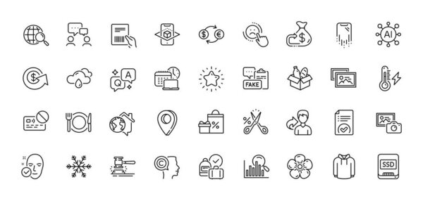 714210878 Dollar exchange, Electricity power and Ssd line icons pack. AI, Question and Answer, Map pin icons. Shopping, Hoody, Approved document web icon. Fake document, Dislike, Cashback pictogram. Vector