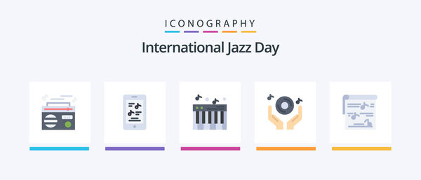 636463744 International Jazz Day Flat 5 Icon Pack Including multimedia. party. music. music. dj. Creative Icons Design