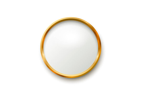 767723810 Golden frame label, event bar button, gold signboard. Vector