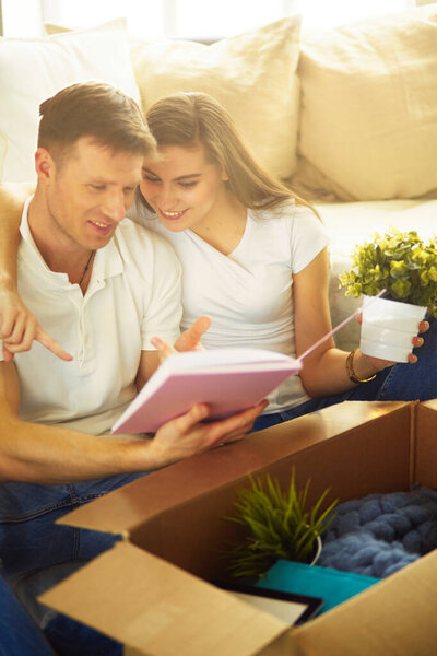 688267308 Young couple relaxing in park at summertime. Cute pair lovers resting on blanket outdoors and reading book together. Romantic picnic of happy lovely family enjoying literature outside. High quality
