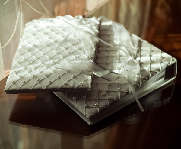 47357259 White wedding albums with pearls for wishes from guests
