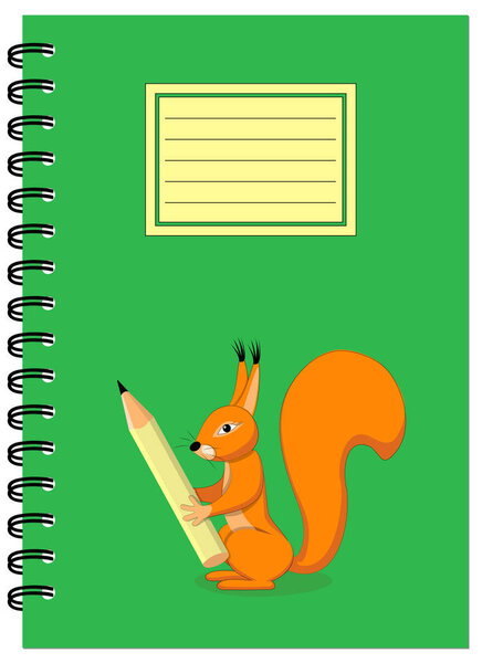 158828316 Cover design with squirrel holding pencil for tutorial cover, notebook, sketchbook, album, copybook. Cover A5 template and empty space. EPS 10