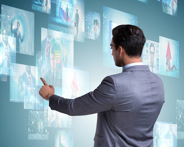 741053562 The collage of photos with businessman