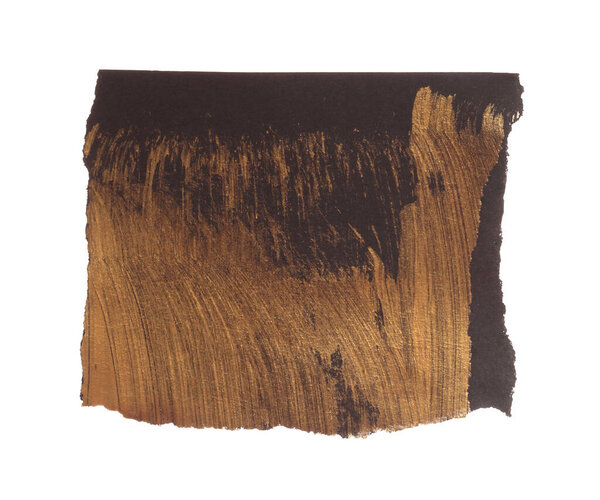 633276990 Torn empty pieces texture gold bronze paper isolated on white background.