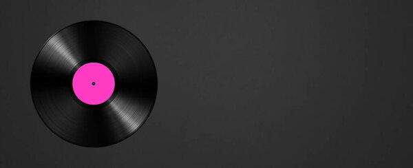 625020960 Pink vinyl record isolated on black background. Horizontal banner. 3D illustration