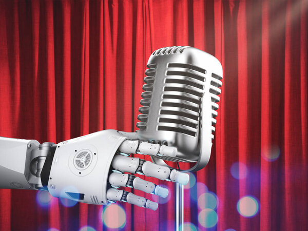 640713162 Ai music composer or generator with 3d rendering singer robot hold microphone
