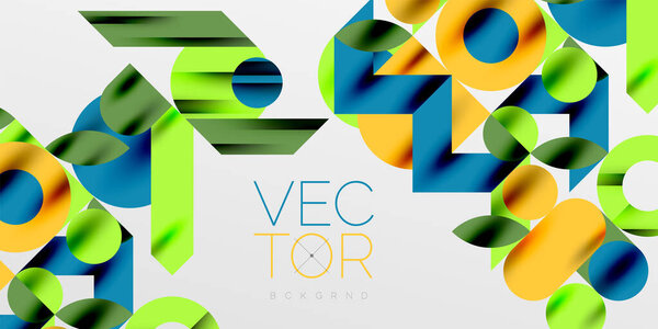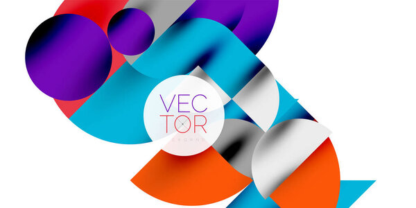 738724580 Colorful simple dynamic geometric forms circles lines and round shapes. Mosaic techno art concept. Vector Illustration For Wallpaper, Banner, Background, Card, Book Illustration, landing page