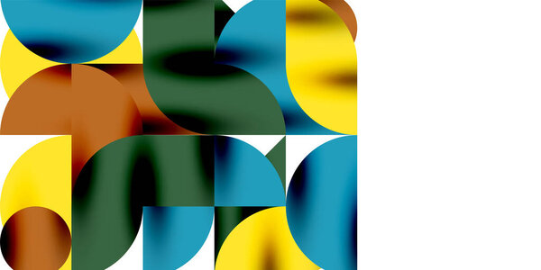 741206564 Colorful simple dynamic geometric forms circles lines and round shapes. Mosaic techno art concept. Vector Illustration For Wallpaper, Banner, Background, Card, Book Illustration, landing page