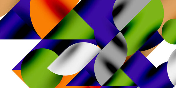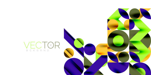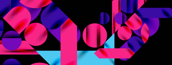 732917298 Colorful simple dynamic geometric forms circles lines and round shapes. Mosaic techno art concept. Vector Illustration For Wallpaper, Banner, Background, Card, Book Illustration, landing page
