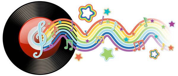 796829300 Vinyl record with vibrant musical notes and stars