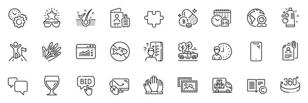668933606 Icons pack as Copyright, Video conference and Thiamine vitamin line icons for app include Speech bubble, Clean bubbles, Bid offer outline thin icon web set. Working hours, Leadership. Vector