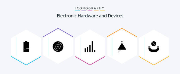 636344918 Devices 25 Glyph icon pack including deny. triangle. connection. sound. instrument