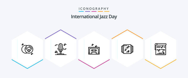 636427130 International Jazz Day 25 Line icon pack including . library . music. collection . tape