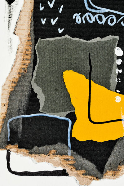 685602834 Abstract background, multicolor art collage. Creative pattern design for print invitation card, postcard. Drawing poster, colorful wallpaper. Yellow, white, black contrasting colors