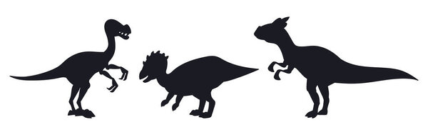 849828608 Dinosaur silhouettes. Jurassic triceratops and homolocephalus ancient animals flat vector illustration set. Wild dinos silhouettes on white