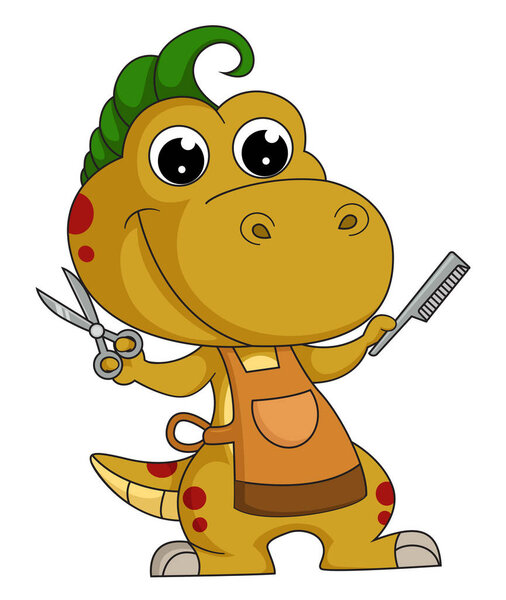 705926436 Cute little dinosaur cartoon professional hairdresser of illustration