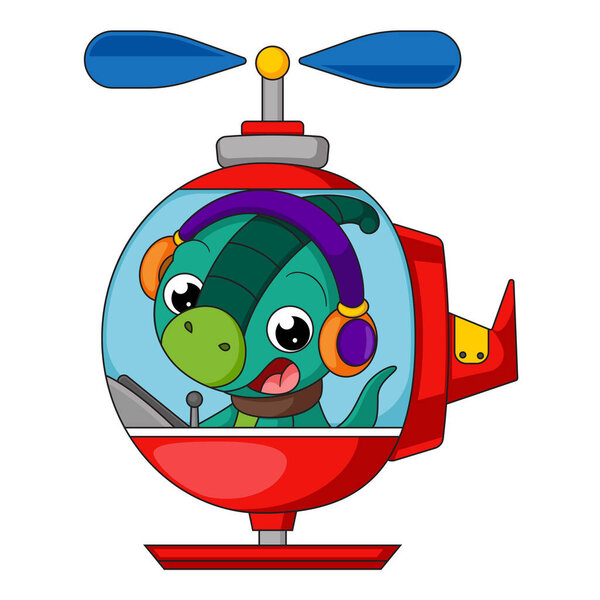 705926524 Cute little dinosaur cartoon on a helicopter of illustration