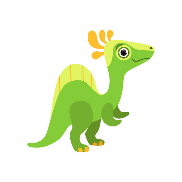 235753492 Cute spinosaurus dinosaur, green baby dino cartoon character vector Illustration isolated on a white background.