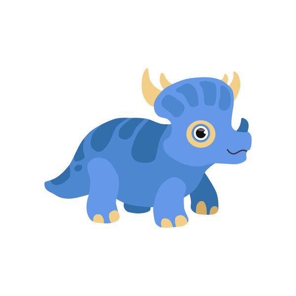 235753886 Cute styracosaurus dinosaur, blue baby dino cartoon character vector Illustration isolated on a white background.