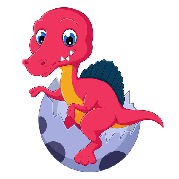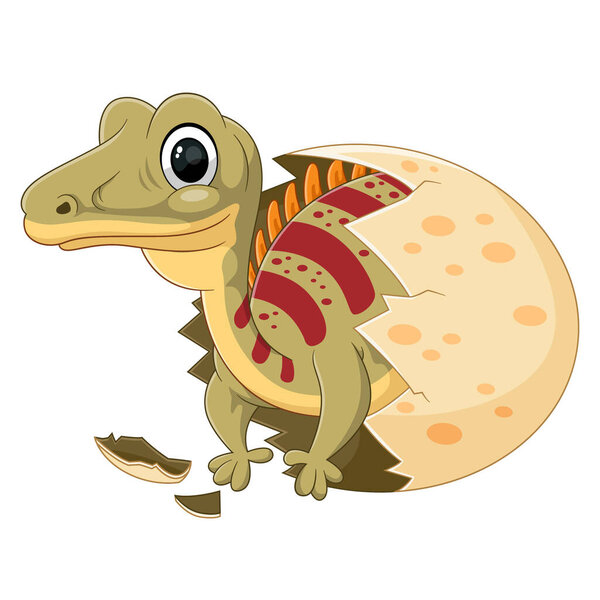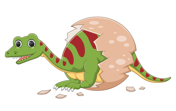703230904 Cartoon baby spinosaurus hatching from egg of illustration