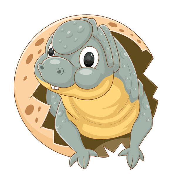 699916298 Cartoon baby unayasaurus dinosaur hatching from egg of illustration
