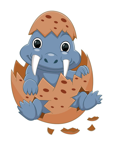 699916396 Cartoon baby tiarajudens dinosaur hatching from egg of illustration