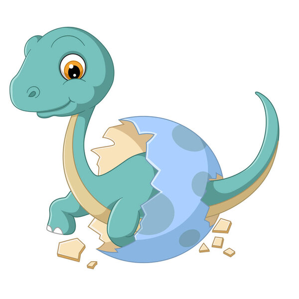 703230792 Cartoon baby diplodocus hatching from egg of illustration
