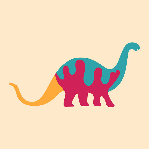 773231130 Multicolored silhouette of a dinosaur. Flat, bright, simple style. Design element for posters, prints for clothing, banners, covers, websites, social networks, logo