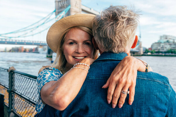 707430376 Happy senior couple spending time together in London city. Concepts about seniority, lifestyle and travel