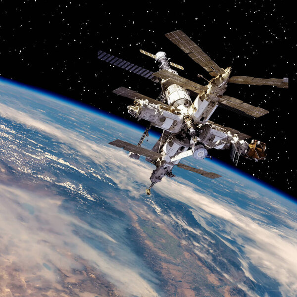 664764204 Space station above the earth. The elements of this image furnished by NASA