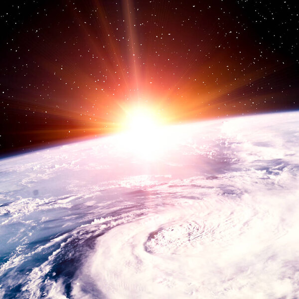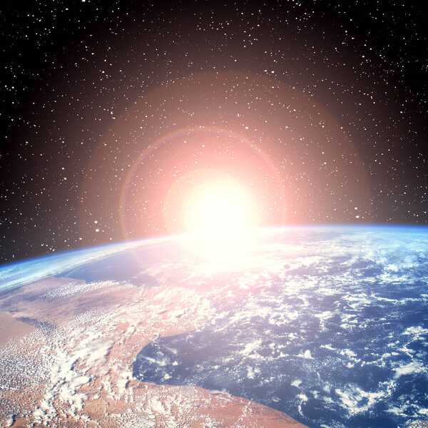664762432 Sunrise, view from space. The elements of this image furnished by NASA