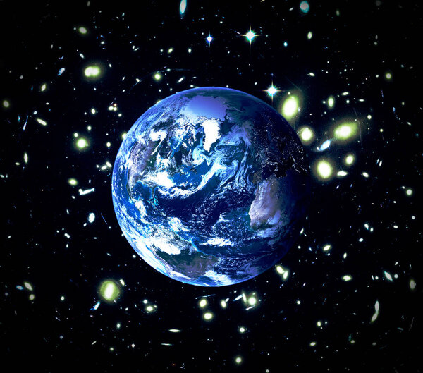 664762708 Abstract space background with earth. The elements of this image furnished by NASA